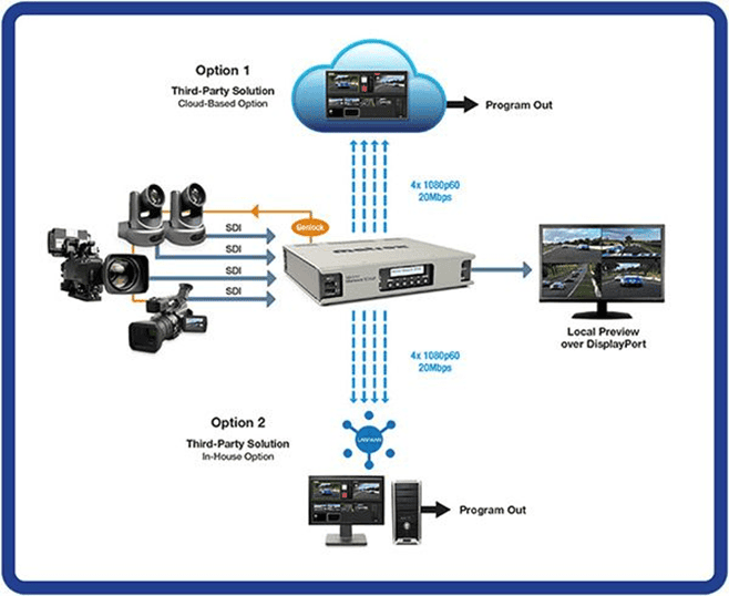 16x channels of embedded SDI audio is supported per input, and 8x channels of audio support per encode using SRT or MPEG2 TS.