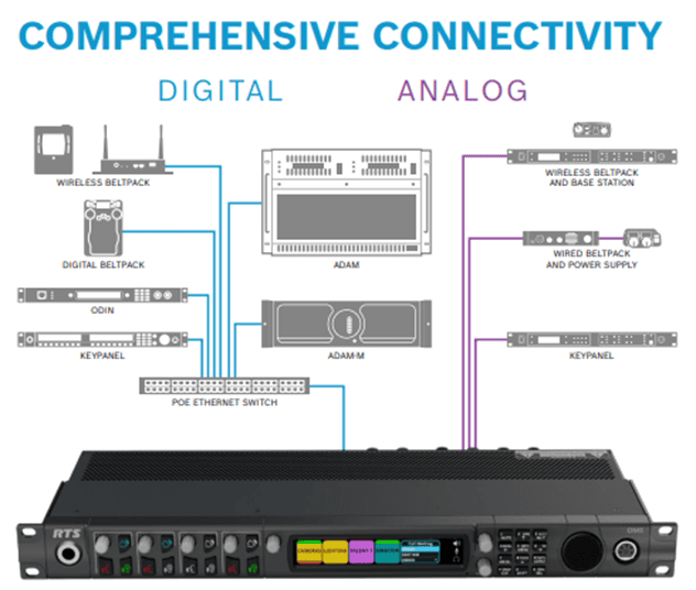 Supports up to 8 keypanels (any mix of analog/OMNEO/RVON) depending upon product licensing. (Maximum 4 analog)